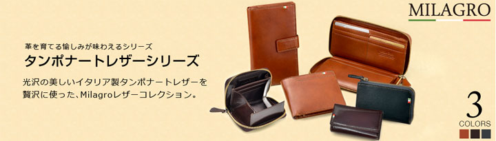 ミラグロには様々なシリーズがありますが、特に人気なのがタンポナートレザーシリーズです。使われている素材にはイタリア製のタンポナートレザーを使用し、光沢の美しさが魅力となっています。